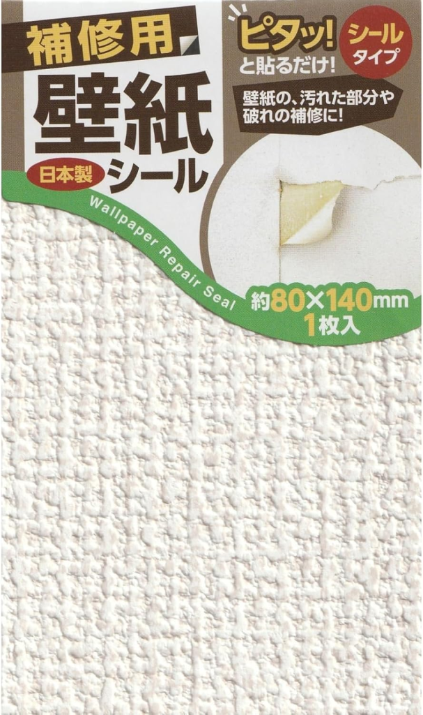 Đây là miếng sticker dạng bóc dán (peel and stick) được thiết kế đặc biệt để vá các vết xước, rách nhỏ hoặc hỏng cục bộ trên giấy dán tường mà không cần tháo giấy cũ ra. Sticker được làm bằng nhựa vinyl chloride phủ họa tiết vải dệt (textile pattern) nhái lại hoa văn giấy dán tường phổ biến tại Nhật – giúp miếng vá hòa vào bề mặt tường xung quanh thay vì nổi bật.